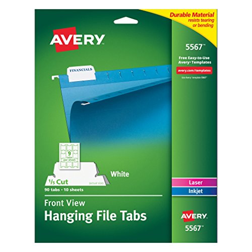 Avery Self-Adhesive Printable Hanging File Tabs, Laser/Inkjet, 1/5 Cut, White, Pack of 90 (5567)