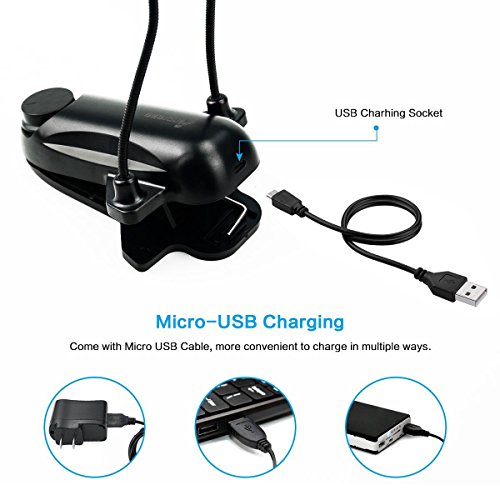♡ Its stepless brightness feature allows you adjust any brightness as you like. It is designed to remember your favorite lighting level and you do not need to reset it every time. In addition, it has timer function. It can turns off itself automatically after 3 mins or 1 hours. The clip is large enough to hold onto the edge of bookcase, bed stand etc. Also, It can stand up itself and work as desk lamp. Up to 20hours working time after one full charge. ♡ Anpress uniqe book light is specially designed for you to read at nights without disturbing others. Or work as outdoor lighting such as BBQ, camping, hiking, climbing or emergency light when power outage. Product Description: ★Material: ABS Plastic ★Working Voltage: 5V DC ★LED Quantity: 12 ★Battery: 2000mA rechargeable lithium battery ★Charging time: 4h (USB charging cable included) ★Using time of full charging: 4-20hours ★Dimmable: Stepless dimmable brightness ★Size: LED Panel: 16*7cm Arm Length: 37cm Clip up to: 5.5cm/2.16inch ★Weight: 174g How to use: 1Press the button, lamp will light up 2Rotate the switch can adjust the brightness of the light, from dim to bright, or from bright to dim How to maintain: ♡When the lights dimmed should stop using, charging as soon as possible, otherwise it will affect the battery life. ♡After the purchase of the product at least 4 hours charging before using. Package includes: 1 x 2 Arms Clip-on Lamp 1 x USB cable 1 x User Manual Our products have been well tested, examined and packaged before sending off. Any problem please feel free to contact us first so that we can supply the best service for you.Feature