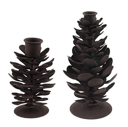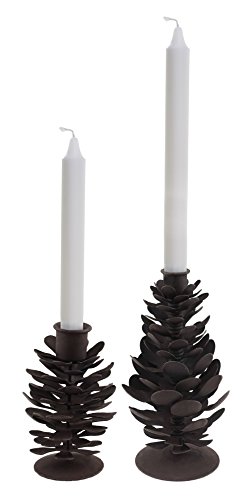 Studio : Creative Co-op Publisher : Creative Co-op Binding : Kitchen Product Description Elegantly rustic, our pinecone candle holders offer an antique-inspired way to display warmly glowing candles! Features a set of rustic style pinecone shaped taper holders - Measurements: Small 4.25"H x 3"W; Large 8.25"H x 3.50"W. Made of metal. Sure to add a touch of charm to any home decor! 0