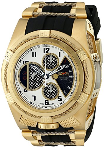 -. Binding : Watch -. Brand : Invicta -. Department : mens -. EAN : 0886678213788 -. Feature : Chrono Functions w/60 Second, 30 Minute and 1/10 of a Second Mesh Sub dials; Date at 9:00 & Retrograde Carbon Fiber Day of The Week Between 1:00 & 5:00; Unidirectional 18k Gold IP SS Bezel Cable Wire / Silver Dial w/Gunmetal & White Hands & Black Arabic Numerals; Luminous; Flame Fusion Crystal; Screw-Down Crown; 18k Gold IP SS Case w/ Cable Wire and Black and White Dials; Black Polyurethane / Swiss-quartz Movement / Case Diameter: 56mm / Water Resistant To 100m (330ft): In General, Suitable for Swimming and Snorkeling, but not Diving -. Label : Invicta -. Manufacturer : Invicta -. Model : 16320 -. MPN : 16320 -. PackageQuantity : 1 -. PartNumber : 16320 -. ProductGroup : Watch -. ProductTypeName : WATCH -. Publisher : Invicta -. Studio : Invicta -. Title : Invicta Men's 'Bolt' Swiss Quartz Stainless Steel Casual Watch (Model: 16320) -. UPC : 886678213788