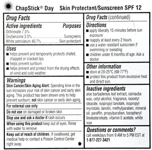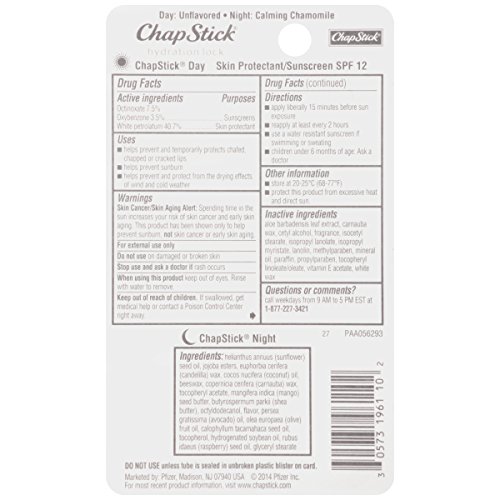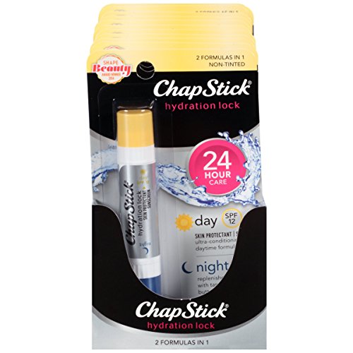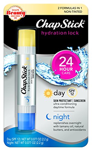 CHAPSTICK DUAL-ENDED HYDRATION LOCK LIP BALM TUBE, SUNSCREEN SPF 12, 0.154 OUNCE, DAY AND NIGHTTIME FORMULA (1 STICK)