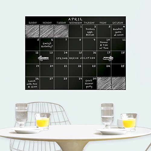 Chalk, the original dry-erase that started it all! This chalkboard monthly calendar can be applied to any flat, smooth surface. Board measures 17.5-in x 24in and comes with two pieces of chalk. WallPops are repositionable and always removable. Contains one 17.5-in x 24-in piece.