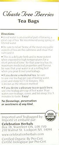 -. Title : Celebration Herbals Organic Chaste Tree Berries Tea, 24 Bags