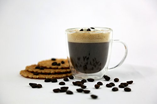 Mouth-blown using top quality very lightweight borosilicate-glass, measuring 3 by 3 by 3½ holding 8 Ounces (240 mL)