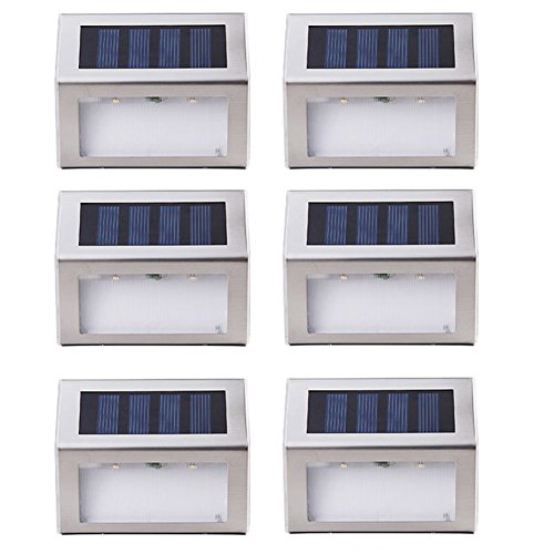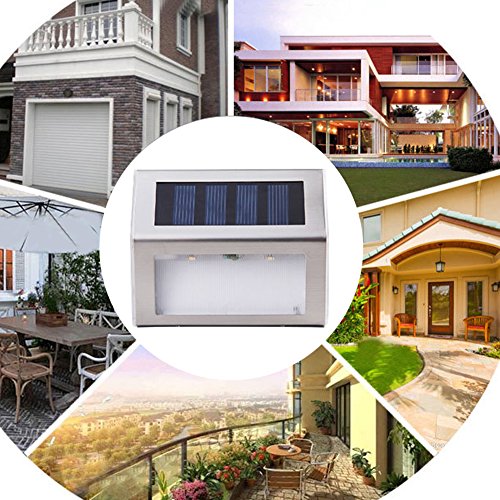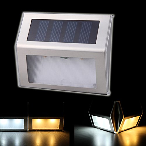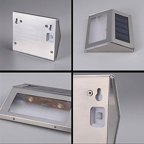 Solar Stair Light JLTPH Outdoor Stainless Steel Solar Powered LED Step Light, Illuminates Stairs Deck Walkway Patio Garden and Landscaping, Warm White