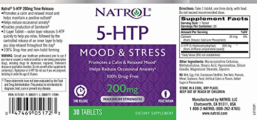 Natrol 5-HTP TR 100mg Time Release is a drug-free plant-derived source of an amino acid that naturally increases the body's level of serotonin, the chemical messenger that affects emotions, behavior, appetite, thought and sleep. Regular use of Natrol 5-HTP helps provide a more positive outlook, promotes relaxation, calm and greater appetite control. Natrol makes this product in the U.S.A.
