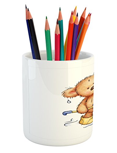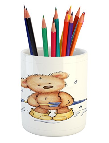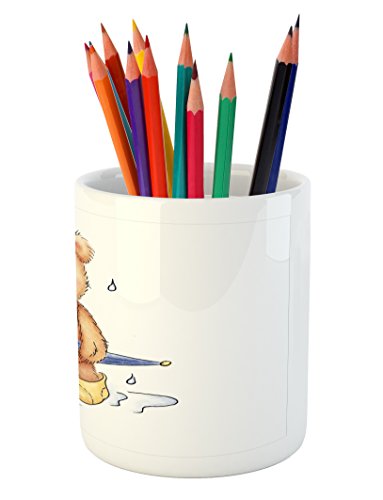 -. Binding : Kitchen -. Brand : Ambesonne -. Color : Multi 1 -. Feature : MATERIAL and SIZE - %100 White Glossy Ceramic. Size: 3.6" height & 3.2" width / FEATURES - Wrap-around printed art on premium quality ceramic. Highly unique. Versatile. FUN. / DESIGNER ARTWORK - Inspirational designs will help organize your pens, pencils brushes & stationary. / DURABLE - Great decorative object with bold vivid colors & clear image. Long lasting. NO FADING. / PRINTED - with state of the art digital printing technology. Proudly designed & printed in the USA. -. Label : Ambesonne -. Manufacturer : Ambesonne -. Model : pen_44042 -. MPN : pen_44042 -. PackageQuantity : 1 -. PartNumber : pen_44042 -. ProductGroup : Home -. ProductTypeName : HOME -. Publisher : Ambesonne -. Size : 3.6" H By 3.2" W -. Studio : Ambesonne -. Title : Bear Pencil Pen Holder by Ambesonne, Teddy Bear Caught up in Rain with Rubber Boots Holding an Umbrella Cartoon, Printed Ceramic Pencil Pen Holder for Desk Office Accessory, Sand Brown Yellow Blue