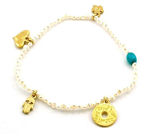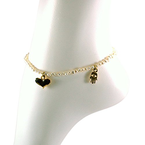 -. Binding : Jewelry -. Brand : MIZZE Made for Luck Jewelry -. Department : womens -. Feature : A beautiful handmade "Natural Beauty" charm anklet / Made with white Pearls / All charms are gold plated / Anklet measures 9.5 inches / Stretch anklet, one size fits most ankles -. Label : MIZZE Made for Luck Jewelry -. Manufacturer : MIZZE Made for Luck Jewelry -. Model : MZ6010WPG -. MPN : MZ6010WPG -. PartNumber : MZ6010WPG -. ProductGroup : Jewelry -. ProductTypeName : FASHIONNECKLACEBRACELETANKLET -. Publisher : MIZZE Made for Luck Jewelry -. Studio : MIZZE Made for Luck Jewelry -. Title : White Pearl "Natural Beauty" Stretch Anklet with Heart, Hamsa & Love Charm