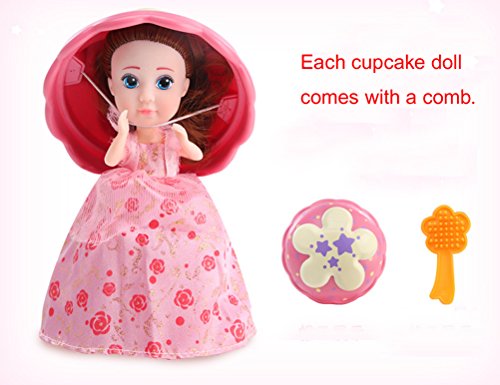 -. Feature : Magic toys for girls:a mini cupmake size 9cm width x9cm height. This is a magic cupcake toys, it could transform from a cupcake to a beautiful long hair princess in a second! / The magic doll comes with 12 different styles princess and 6 different scents in good smell like strawberry, vanilla, grape, chocolate, lemon and caramel. The color of cupcake will send by random so the inside princess face and dress style you will get is "X". It will be a big surprise for your girls. / The transform toys is great for age 3+ year old girls,they will feel exciting on getting the cupcake after opening and transforming! Enjoy its changes just like boy's hatching egg toys. / Cupacke with doll inside is made of high quality ABS and vinyl material, it is safe and non-toxic and pass international SGS text. / After transform from cake to 15cm tall princess doll, she have long hair,wearing a nice gown and a hat(cupcake hood), and comes with a comb. Package: 1 cupcake into a colorful PVC box.