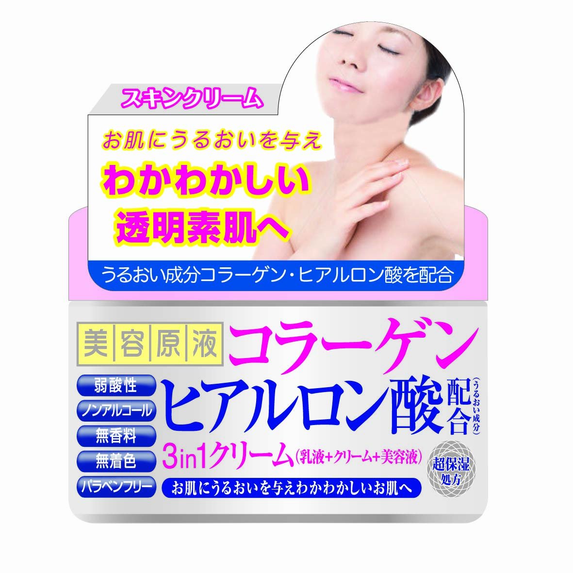 Cosmetic Tex Roland Three in One Cream Collagen&Hyaluronic Acid - 180g (Harakjuku Culture Pack)