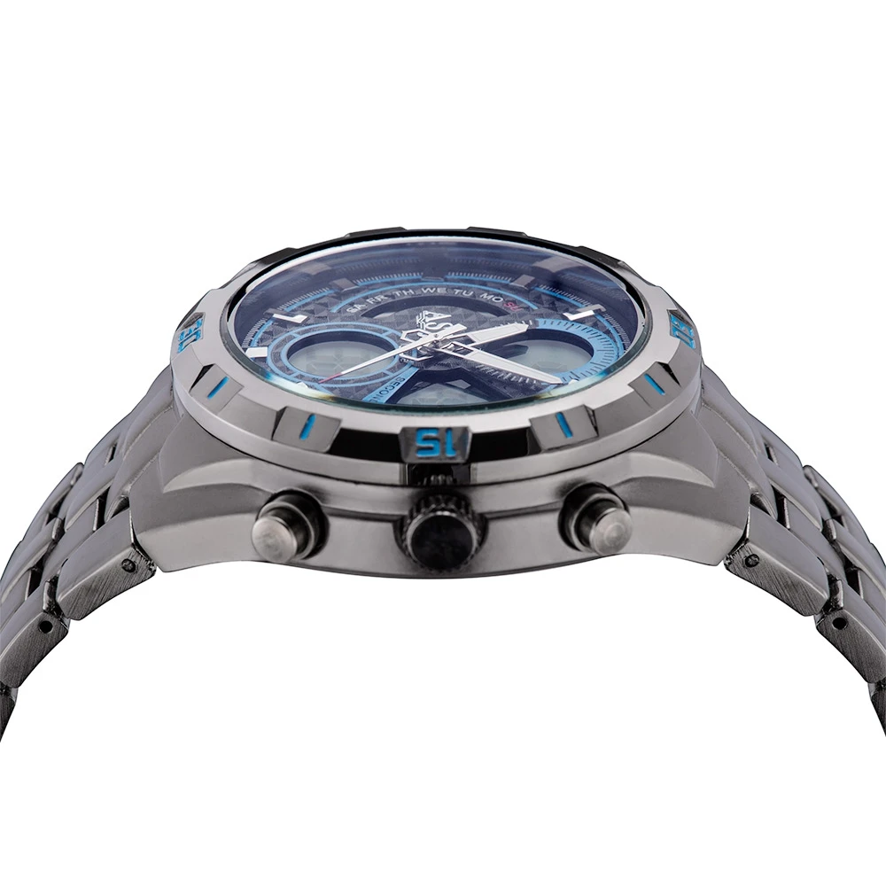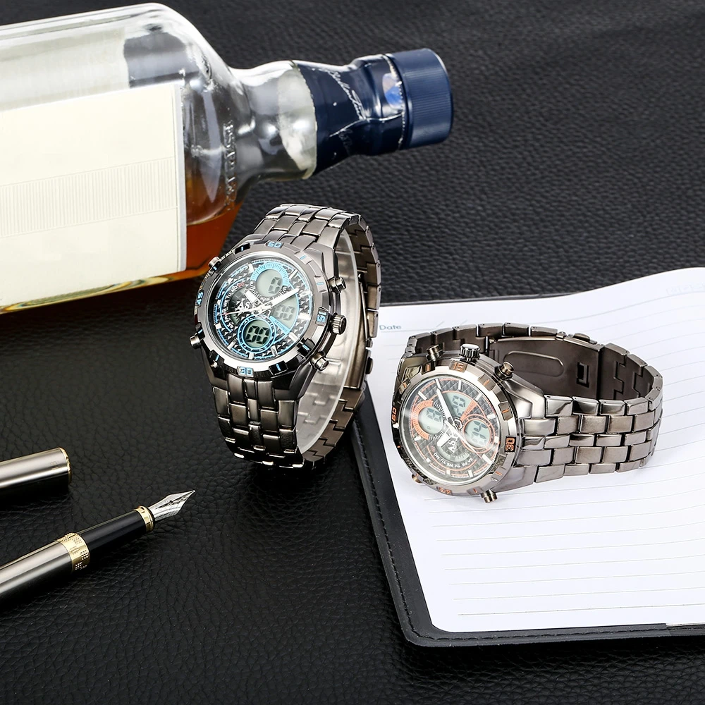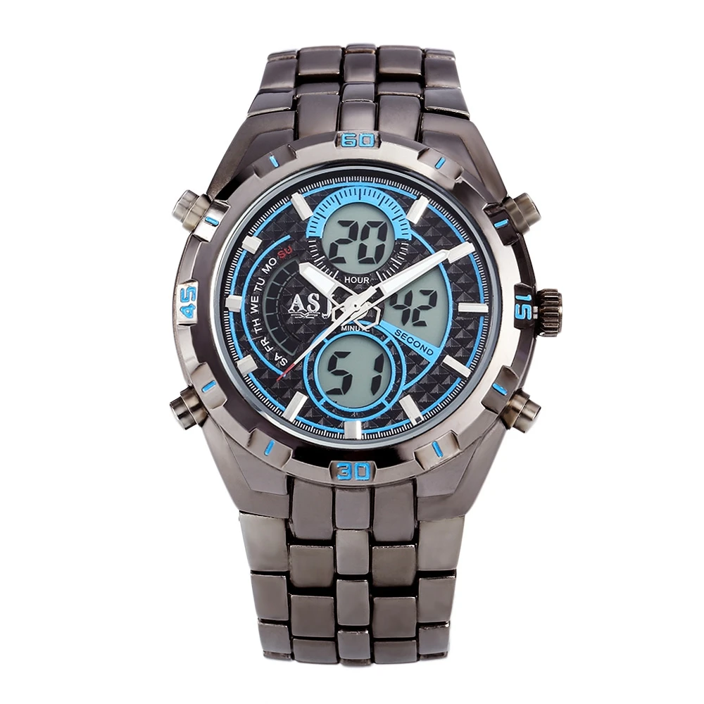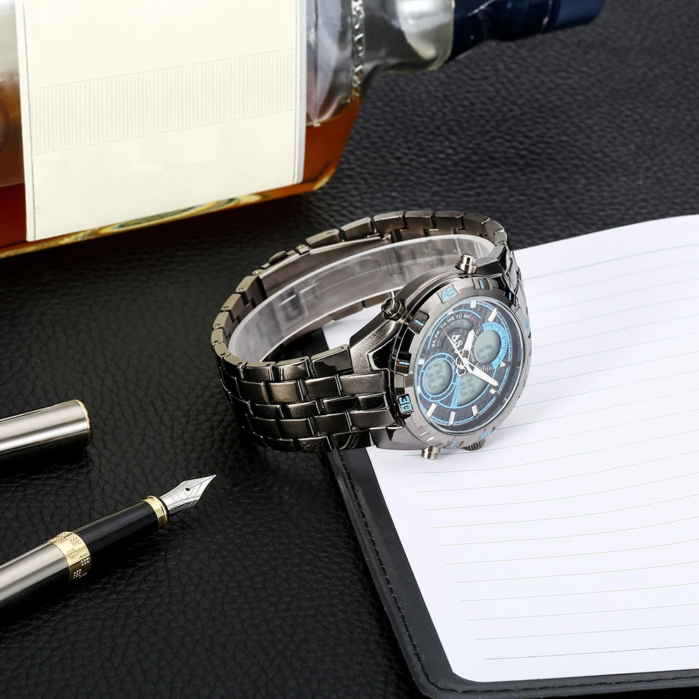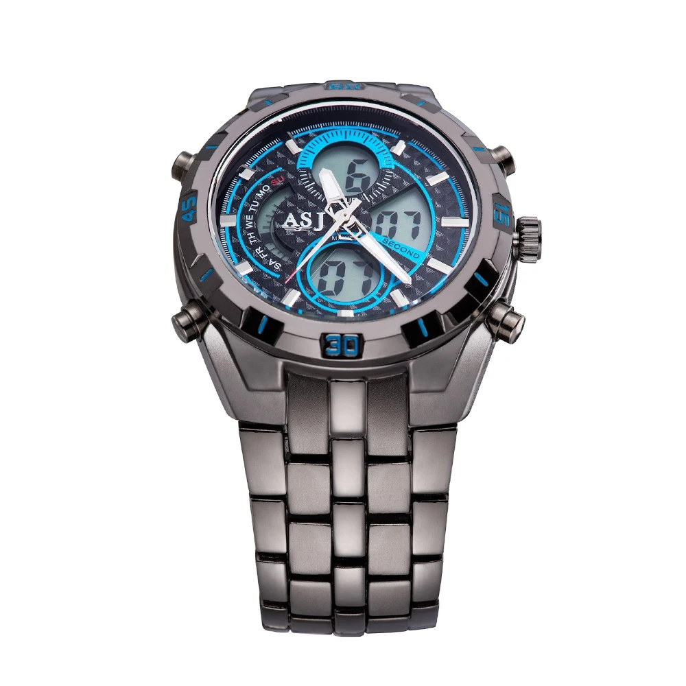 Feature:Water Resistant,LED display,Multiple Time Zone,Auto Date,Back Light,Complete Calendar,Alarm,Chronograph