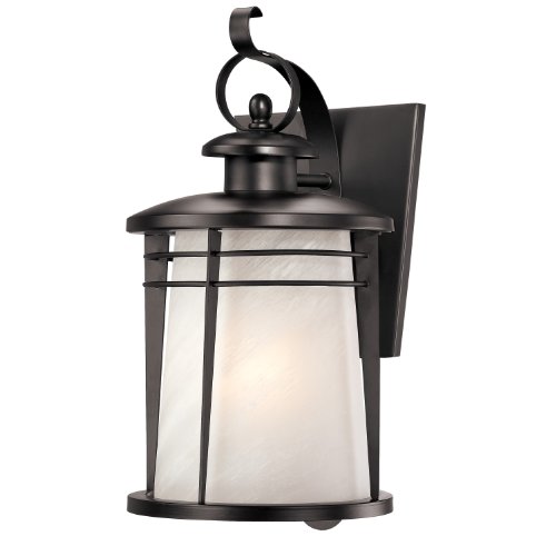 Westinghouse 6674200 Senecaville One-Light Exterior Wall Lantern, Weathered Bronze Finish on Steel with White Alabaster Glass
