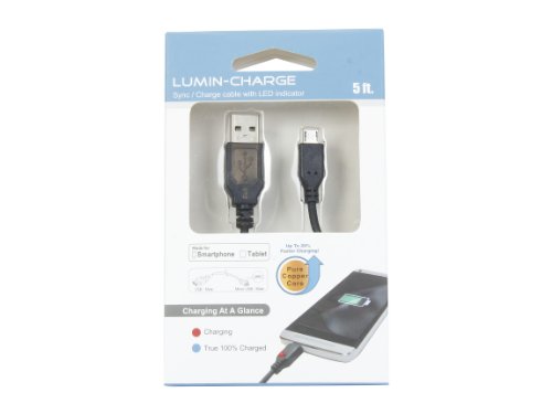 Rosewill Lumin-Charge 5-Feet Charge/Sync USB to Micro-USB Pure Copper Cable with LED Charge Indicator (R4U-13001-BK)
