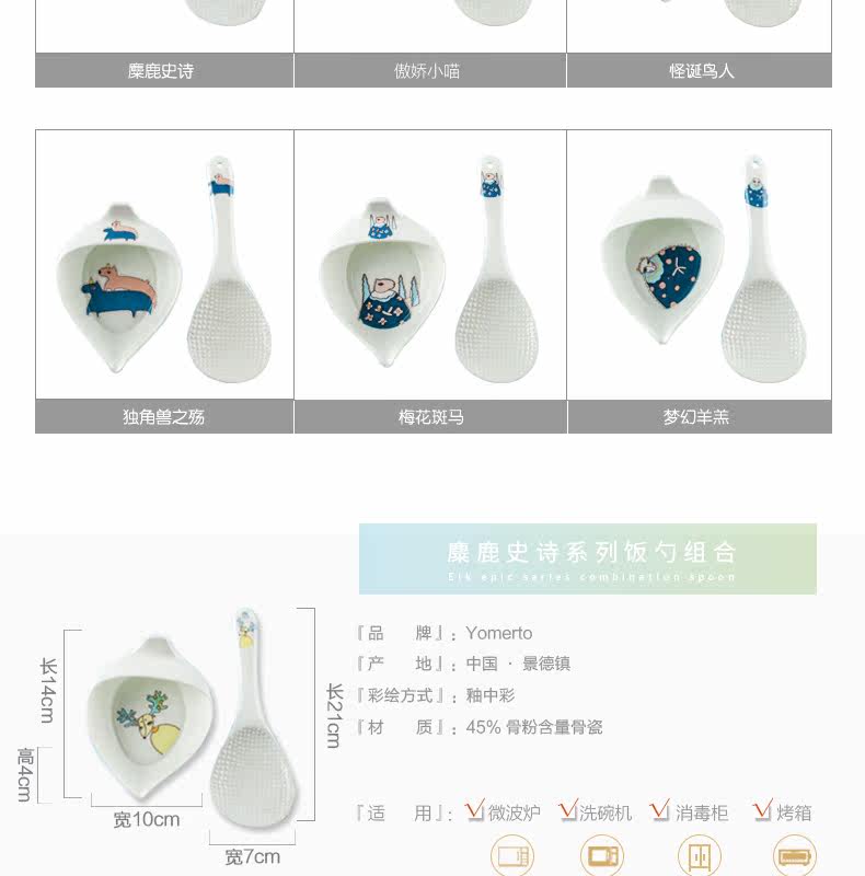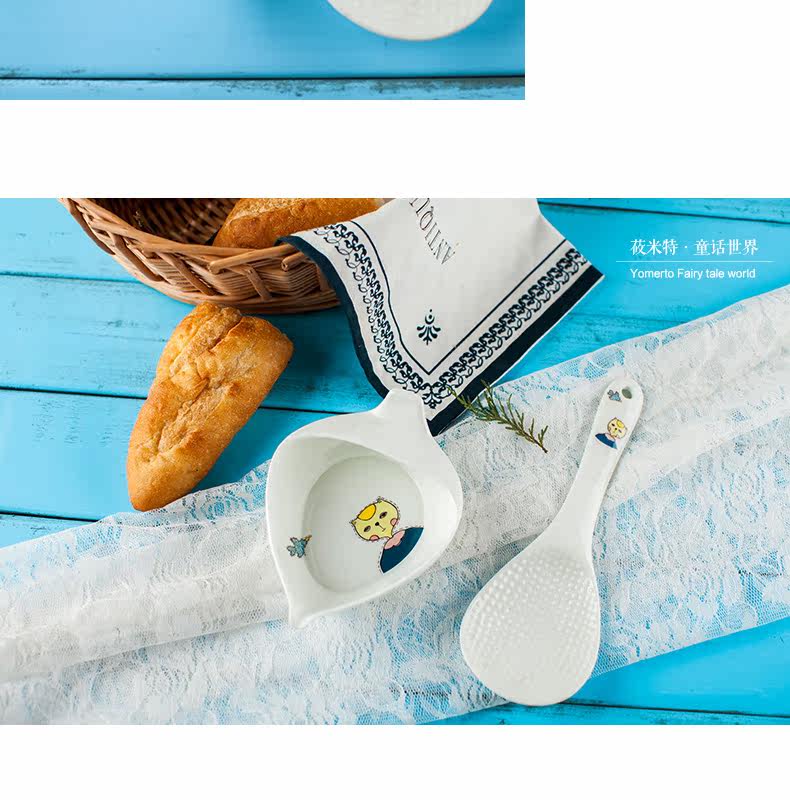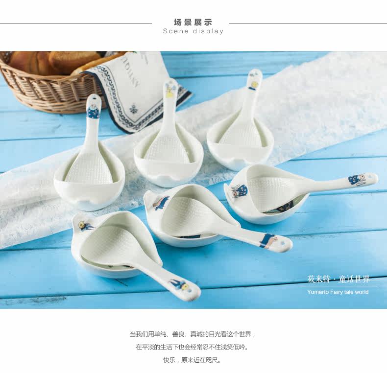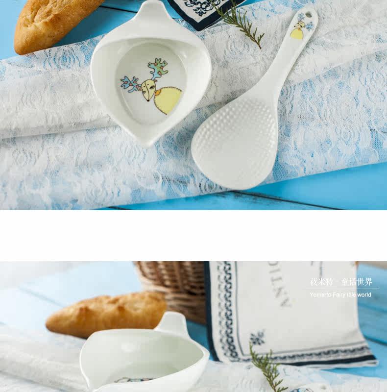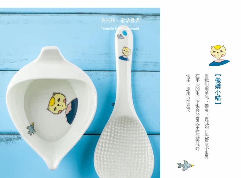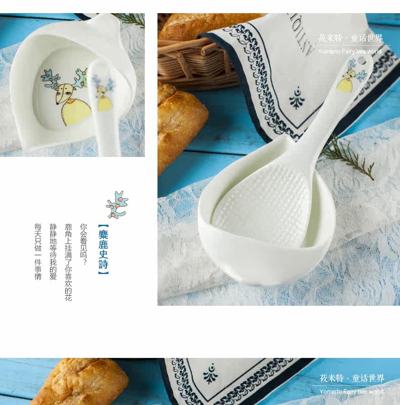 盛饭勺子陶瓷器长柄防滑防烫 可爱卡通骨瓷套装骨瓷大勺羹含托盘