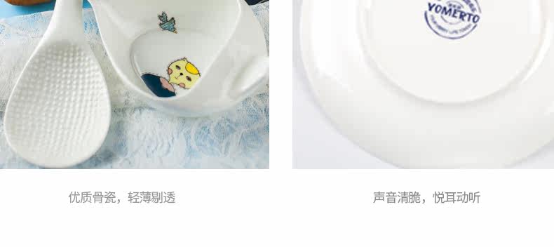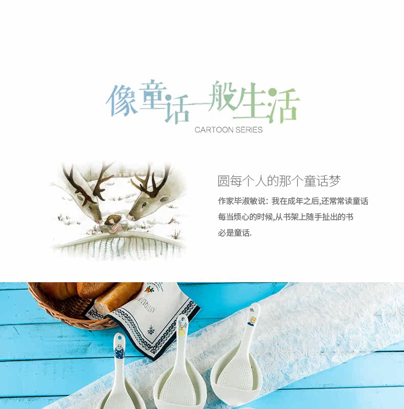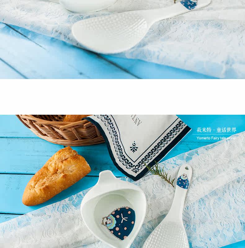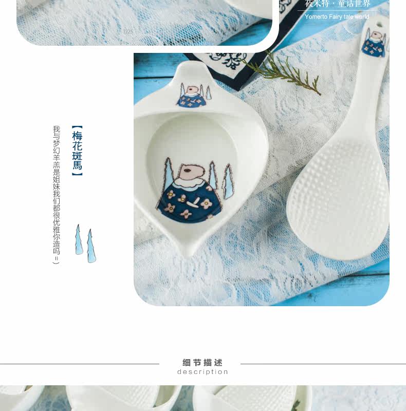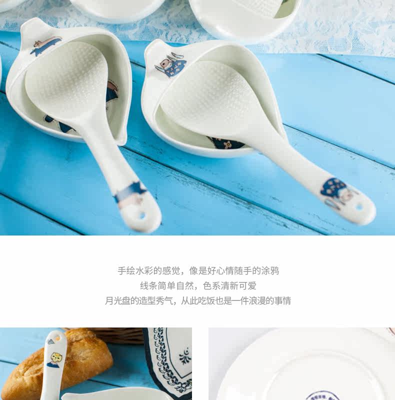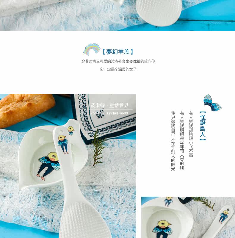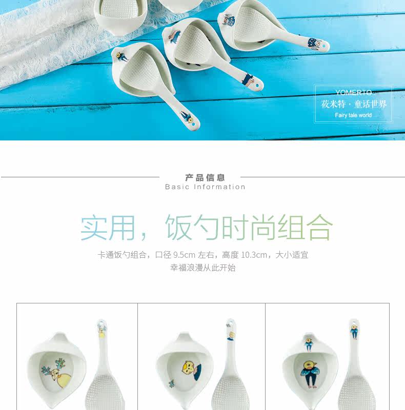 盛饭勺子陶瓷器长柄防滑防烫 可爱卡通骨瓷套装骨瓷大勺羹含托盘