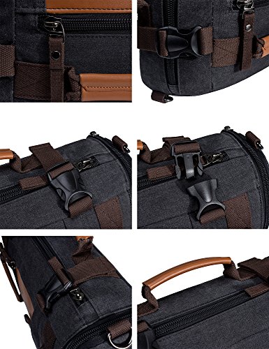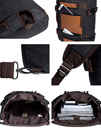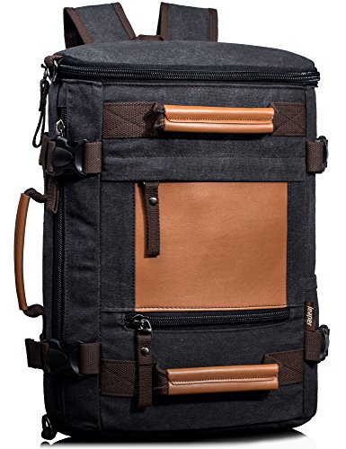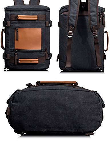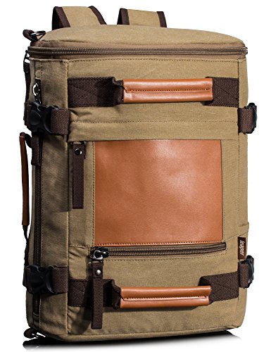 -. Brand : Leaper -. Department : mens -. Feature : Material: High density cotton canvas + PU Leather decoration. / Structure: 2 Front pockets, a main pocket with a laptop pocket inside; 2 internal pockets. / Dimension: 12"L x 16.4"H x 5.4"W, 30.5cm L x 42cm H x 14cm W; can hold most 15 inch laptop; / Multi-purpose uses: This bag can be used as a duffle, handbag, gym bag, suitcase, backpack, laptop bag, shoulder bag or a cross body bag. Two durable padded straps are in a hidden compartment to make this bag a backpack, rucksack or satchel. A detachable shoulder strap can easily turn the backpack into a messenger bag, cross body bag, mail bag or shoulder bag. One bag offers at least three different ways of carrying. / It's a very durable backpack. It is not huge but just the right size for weekend travels, looks cool. It is retro and also prefect for professional to use without looking too collegiate. It is a perfect gift for your boyfriend, husband, father and son. -. ProductGroup : Sports -. ProductTypeName : OUTDOOR_RECREATION_PRODUCT -. Title : Leaper Heavy Duty Sport Backpack Travel Hiking Rucksack Multifunction Camping Bag