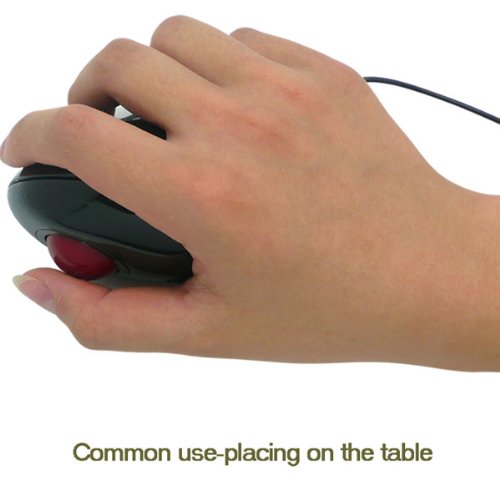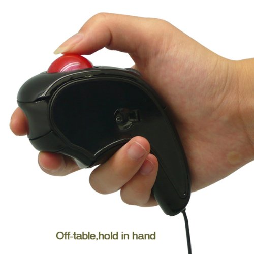 -. Feature : Handheld Wired Mice Mouse / Dual and alternative usage way, off-table or placing on the table. / It can greatly ease the harm of palm joint or muscle for long time using mouse / Thumb-controlled trackball / Connects via USB Port