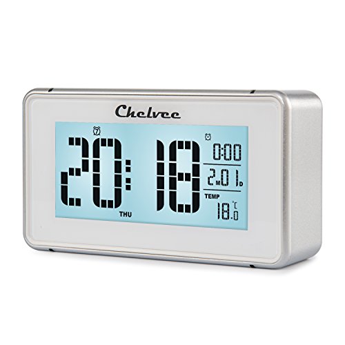 -. Title : Chelvee(TM) 多機能 大スクリーンLCDデジタル目覚まし時計,押すと自動光感知、夜間点灯,温度/日付/時間表示,5/6/7日アラームセット,スヌーズ機能,外観おしゃれ、シンプル