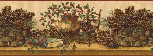 -. Title : Brewster 418B80969 Pinecone Scenic Border, Brown