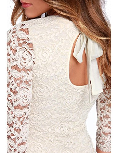 Binding : Apparel Product Description Here is every lady's MUST-HAVE cocktail/party dress! It's easy to pair with any heels or boots, and you'll be the "it" girl at parties and clubs!Crew neck with sheer 2/3 sleeves.Pretty floral lace fabric.Cut out back with self-tie detail add more sweety sexiness.It's perfect for any special occasion such as cocktail events, parties, dances, dates, holiday get togethers, and more! 0