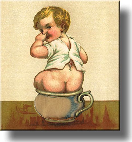 Boy on Chamber Pot Potty Seat Bathroom Picture Made on Stretched Canvas, Wall Art Decor Ready to Hang!.