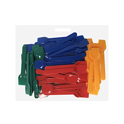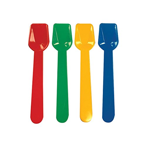 Party Essentials N525062 Heavy Duty Hard Plastic Gelato/Tasting Spoons in Assorted Primary Colors (50 Pack), Red/Yellow/Blue/Green