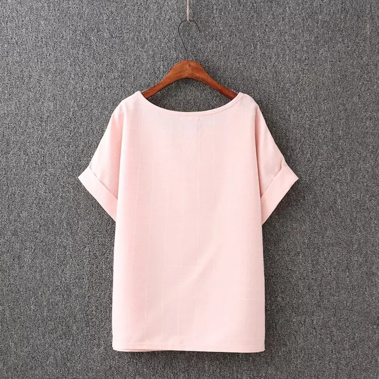 Model Number:plus size 4XL Solid color Plaid women T-shirt 2017