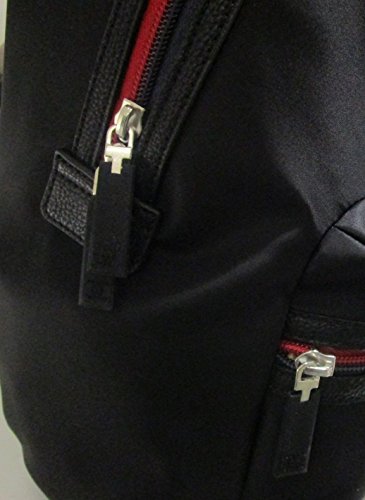 -. Binding : Apparel -. Brand : Tommy Hilfiger -. Color : Black -. Department : womens -. Feature : Strong nylon backpack by Tommy Hilfiger. Suitable for men or women. / Adjustable padded shoulder straps / Zippered closure / Slightly padded laptop pocket inside. 2 small interior slip pocket and small interior zippered pocket. / Length:11 inches X Height: 16 inches X Width: 6 inches -. ProductGroup : Apparel -. ProductTypeName : BAG -. Size : Large -. Title : Tommy Hilfiger Nylon Backpack