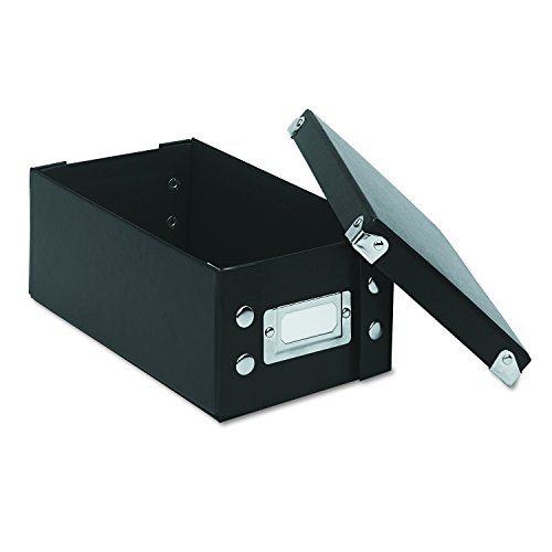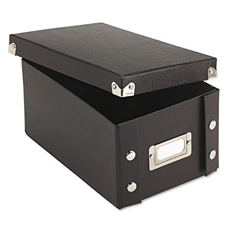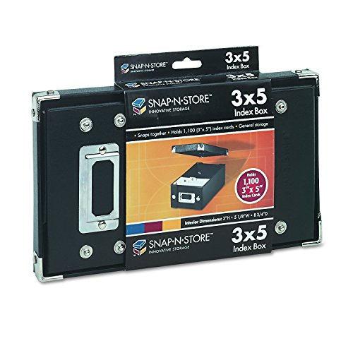 Snap-N-Store decorative and durable storage boxes work throughout your office or home. Snap-N-Store provides a creative alternative to today's plastic storage products. And you can store things where you use them! This box is designed to be an ideal storage place for index cards, receipts, or pictures. Assembly is quick and easy-just snap together and begin filing. Boxes feature sturdy fiberboard construction with a water-resistant laminate. Steel corners for extra protection. Chrome label holder on front aids filing and retrieval; labels included. Holds 1,100 index cards. BlackFeature