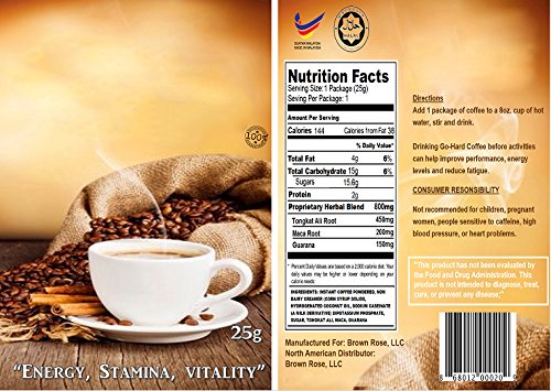 Studio : Go-Hard Herbal Coffee Publisher : Go-Hard Herbal Coffee Binding : Health and Beauty Product Description Go-Hard contains a propriety blend of ingredients including Tongkat Ali, Maca Root, and Guarani. These Herbs grow wild in the jungles of Malaysia and have been used for centuries by the people of Asia and South America to greatly improve sexual health, libido, and overall wellness. The combination of these ingredients produces an awesome effect that can last up to 2 ? 3 days. 0