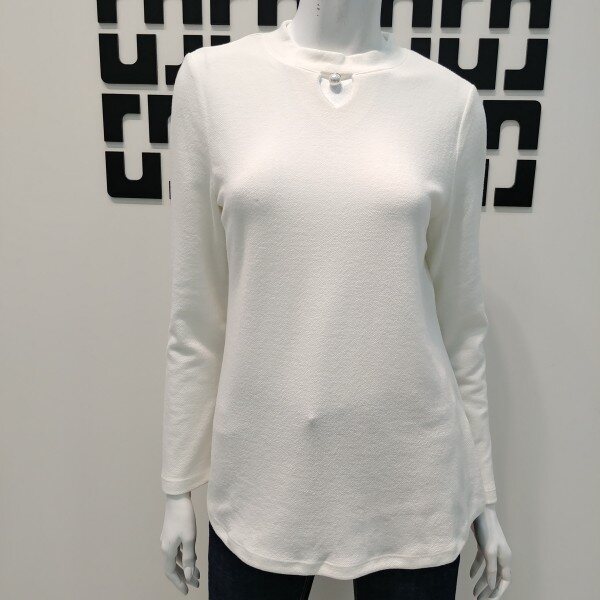 넥 진주 포인트가 들어가 여성스럽게 입을수 있는 편안한 저지 티셔츠 입니다 깔끔한 디자인에 여성스러운라인으로 블라우스 처럼 입기좋은 스타일 입니다 허리 라인이 살짝 들어가 단정한 느낌을 주고 날씬해보이는 효과가 있는 스타일 입니다★26 인치 기장 입니다★