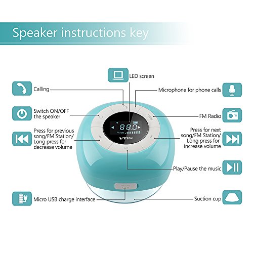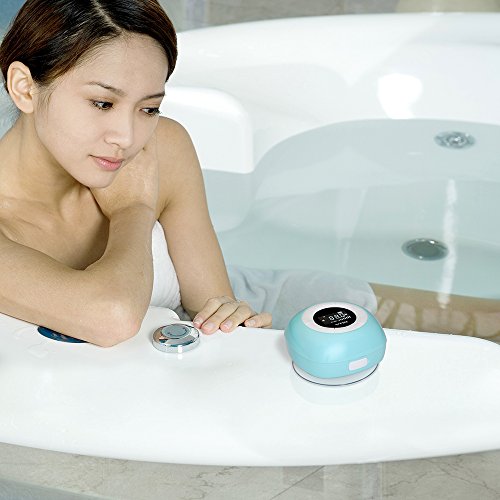 -. Feature : Neueste Bluetoothtechnologie Verbindung in nur 3 Sekunden, Reichweite bis zu 10 Meter / Full HD Klang: Kristallklare Klangqualität, 5 W Audio, passiver Subwoofer. IP65 wasserdicht, für Dusche, Strand und Schwimmbad / Starke Saugwirkung und leichte Bedienung: Mit dem starken Saugnapf kann der Lautsprecher an Wänden, Glas, Arbeitsflächen, Badewannenrand oder anderen glatten Oberflächen angebracht werden. Einfache Knöpfe für Start, Stopp, Pause, Lautstärke und Anrufannahme. / Lange Akkulaufzeit und eingebautes Mikrofon: Litihium-Ionen-Akku 1000 mAh mit einer Laufzeit bis 10 Stunden bei 80 % Lautstärke Die Rauschunterdrückung des digitalen Mikrofons ermöglicht eine klare Anrufqualität. / Praktisches Bügeldesign, einzigartige Eigenschaften: Einfaches, aber modisches Design, weiche Oberfläche, hochwertiges Metall, tragbar und praktisch, Wiedergabe von Musik immer und überall, auch unter der Dusche.