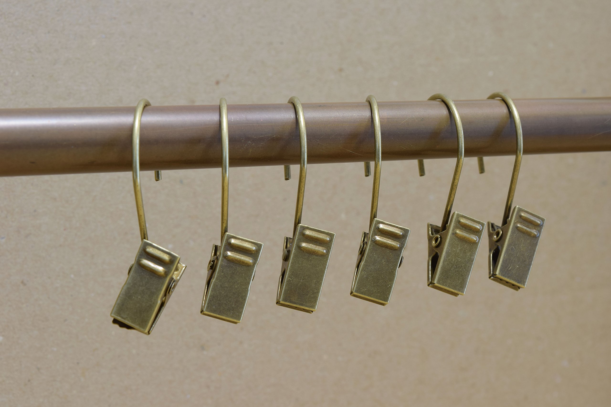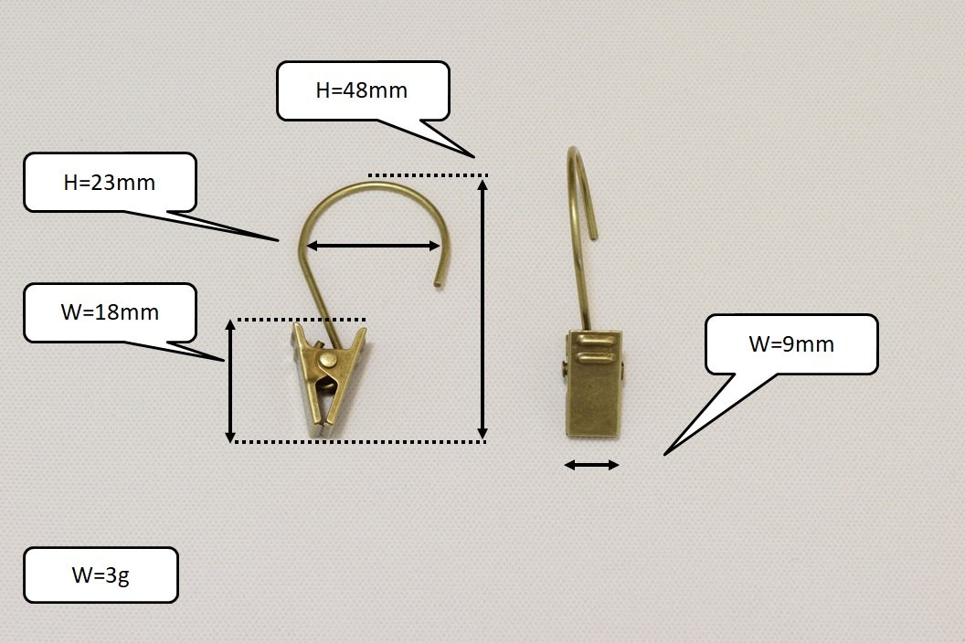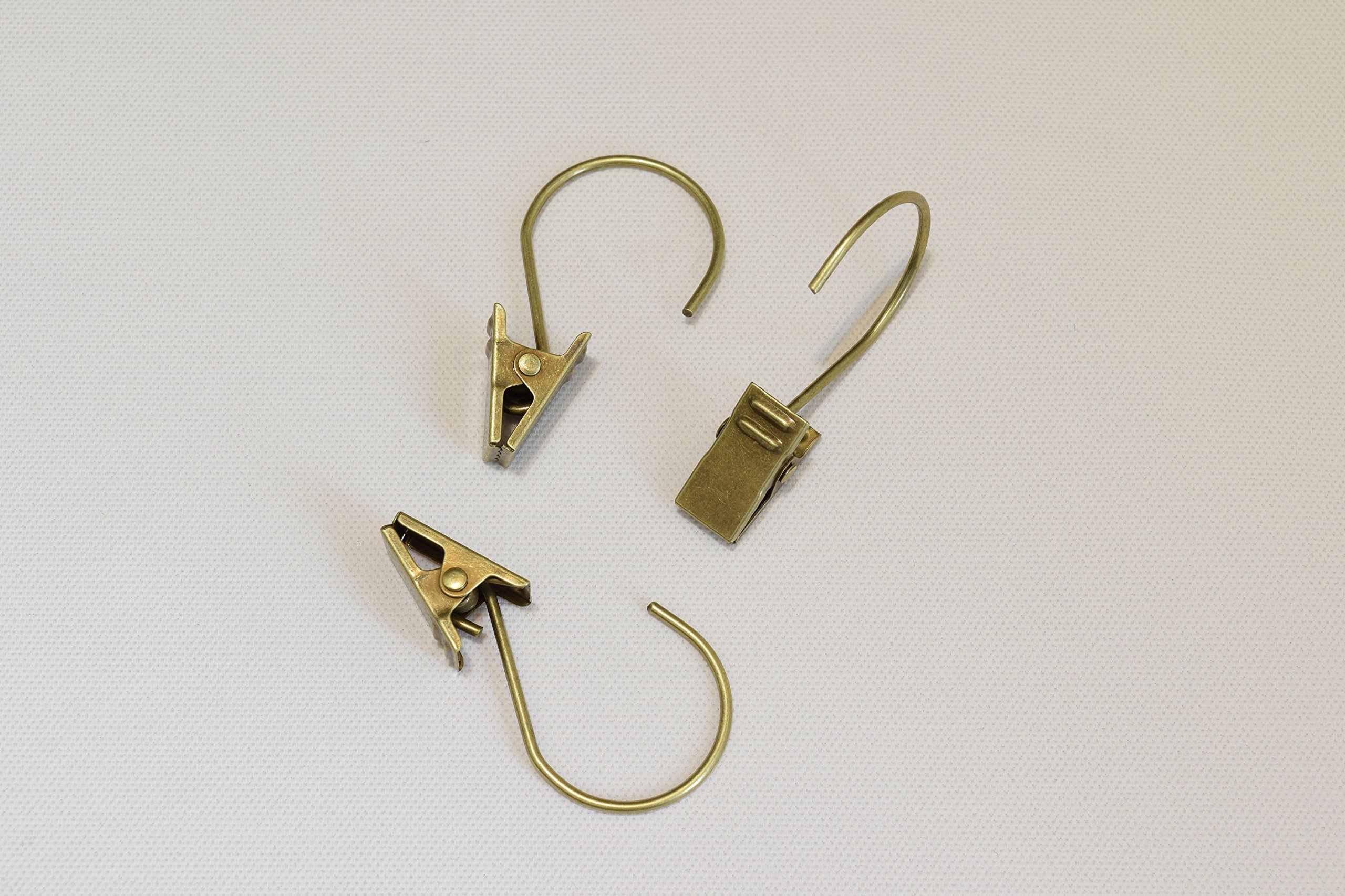 A curtain clip (curtain runner with clip) is a metal fitting that can be used like a curtain by hanging it on a rail with a cloth in between.