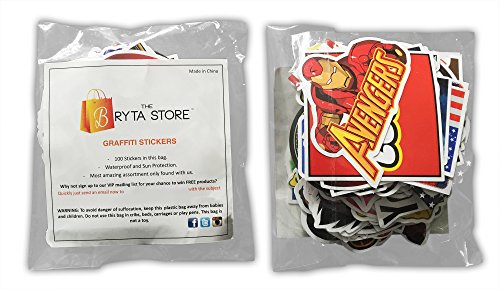 -. Feature : #1 QUALITY - We're proud to say (and so are our customers) that our quality stickers are undoubtedly the BEST IN THE MARKET. You can 100% expect Waterproof, PVC and Sun Protection with ALL our stickers. Sizes range between 6-15cm. / #1 CHOICE - A great variety for EVERYONE. THE ONLY BAG to offer 100 amazing range of stickers. Packs will vary but include: Despicable Me Minions, Avengers, Spiderman, Superman, Batman, Hulk, Simpsons, Super Mario, , Transformers and many more HOT SELLERS. / #1 SATISFACTION - You think it's too good to be true? Just click BUY and you're covered for 30 days 100% MONEY BACK GUARANTEED / STICKERBOMB, PERSONALIZE, CUSTOMIZE - Just let your imagination do the work. Stick them and use them for your Laptop, Graffiti, Vinyl, Vintage, Decal, Skateboard, Car, Bumper, Hoverboard, Snowboard, Helmet, Lage. Or if you need inspiration look out for the reviews below and see how other customers are using them. / IMPORTANT - We are working SO So so hard to make sure you get the best stickers in the market. But you need to make sure the "Sold by" name is "The Bryta Store". Look for it right under "In Stock". It's the only way we can guarantee you to buy the GENUINE pack from Us.
