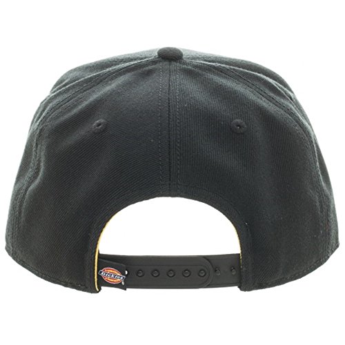 Feature : Structured Firm Front 5 Panel Baseball Cap / Seamed Front Panel with Full Buckram / Embroidered Dickies Logo on Crown and 8 Rows Stitching on Flat Visor / Dickies Woven Label with Adjustable Snapback / One Size Fits Most