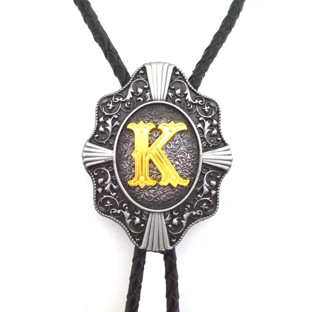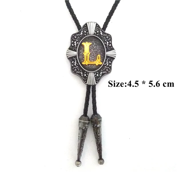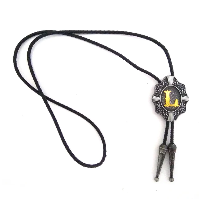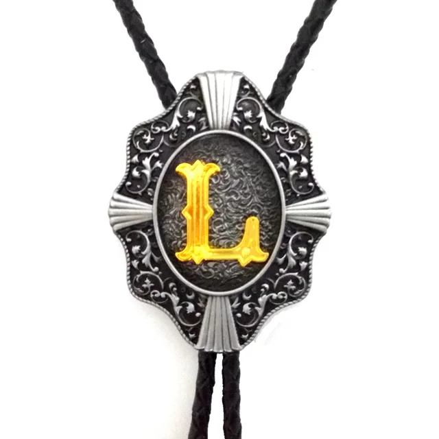 | [해외]웨스턴 카우보이 볼로 타이 Balck의 PU 가죽 금속 버클 골드 편지 "L" 소매 도매 정의 볼로 타이 |