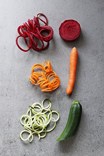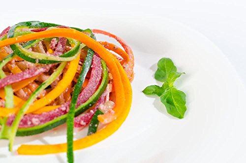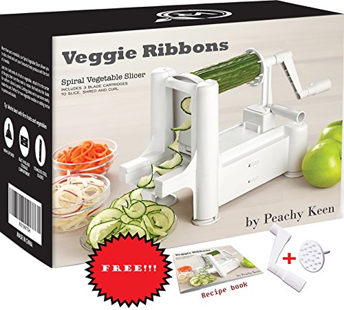 GREAT FOR LOW-CARB & PALEO DIETS - Veggie Ribbons® Tri-Blade Spiral Fruit & Vegetable Slicer is perfect for spiraling, slicing and shredding fruit and veggies like: apples, onions, carrots, zucchinis, cucumbers, cabbages, beetroots, turnips, and anything else you can think of!