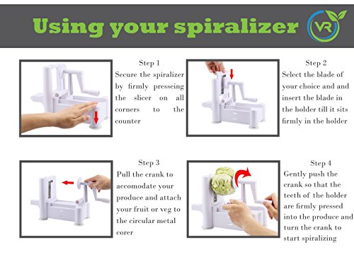 NOW WITH RECIPE BOOK/INSTRUCTION MANUAL -EASY TO USE - Using Veggie Ribbons® Tri-Blade Spiral Fruit & Vegetable Slicer is the easiest way to spiral, slice and shred fruits and vegetables!