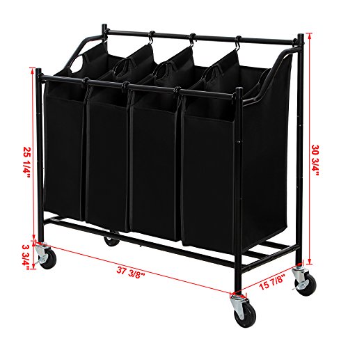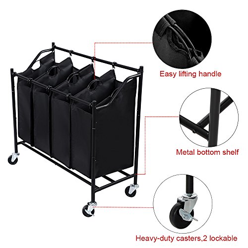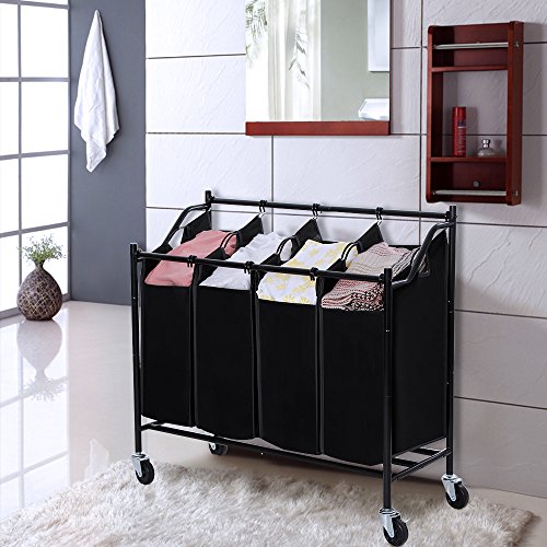 -. Title : SONGMICS 4-Bag Rolling Laundry Sorter Cart Heavy-Duty Sorting Hamper W' Removable Bags & Brake Casters