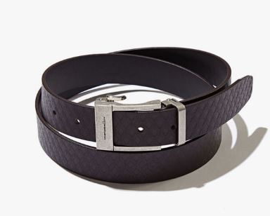 - 클래식한 와플 패턴 디자인으로 완성된 레더 벨트.