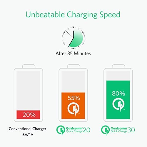 Quick Charge 3.0: Up to 4x faster than standard chargers, able to charge compatible devices to 80% in just 35 minutes. Backwards compatible with all versions of Qualcomm Quick Charge.