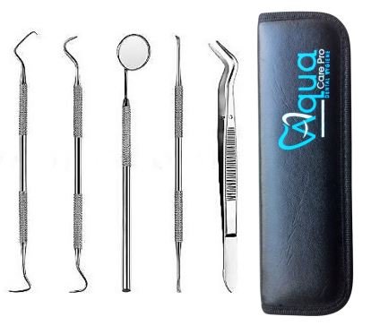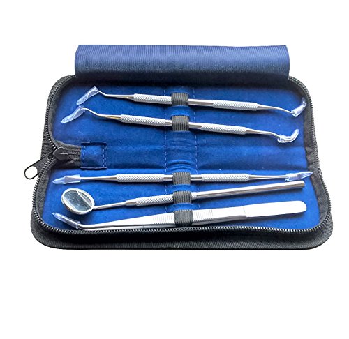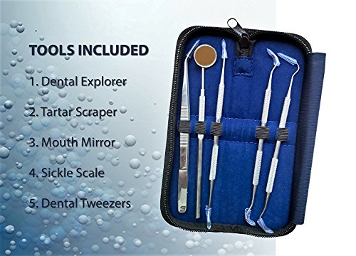 5 Tools Dental Hygiene kit, Dental Pick, Dental instruments set, Stainless Steel/ Sickle Scaler/ Anti-Fog Mouth Mirror, Dental tools/ Deep Teeth CLeaning/ Tartar Removal / Teeth Whitening/