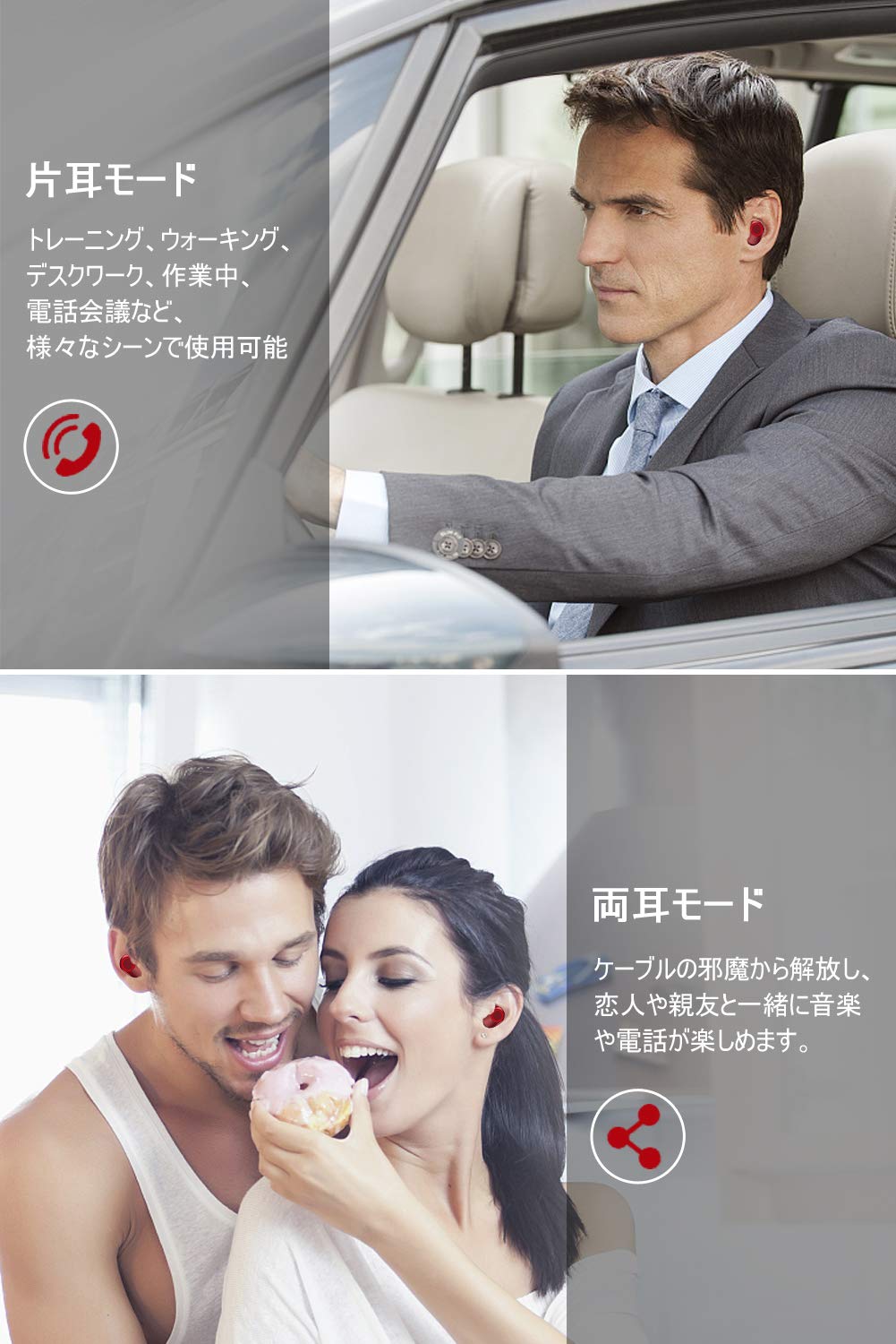 【 片耳・両耳対応~簡単自動同期&自動ペアリング 】左右両耳通用可能、毎回「L」と「R」を確認する必要がありません。優れた装着感と洗練されたデザインを両立し、外れにくく長時間の使用でも快適!複雑な操作が不要で、第一回Bluetooth機器と成功にペアリングしたあと、二度と手動でペアリングする必要もなく、自動的に接続します!