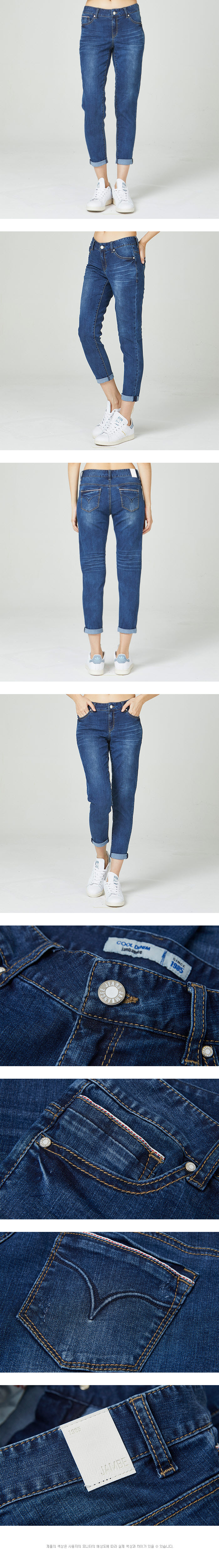 흡습성이 뛰어나 땀을 빨리 배출시켜 시원함을 느낄 수 있는 쿨맥스 소재로 MB톤 은은한 얼룩이 워싱에 과하지 않은 구제로 포인트를 준 여성용 BF핏 데님스타일.