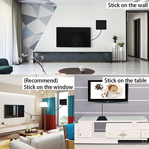 Before use, please connect the antenna and move it to find the best location for stronger reception. Connect antenna to your TV Place the antenna to window or stick to window glass Choose correct signal source. Start to scan channels. You can move the antenna and then rescan to find the best install location