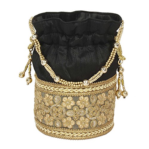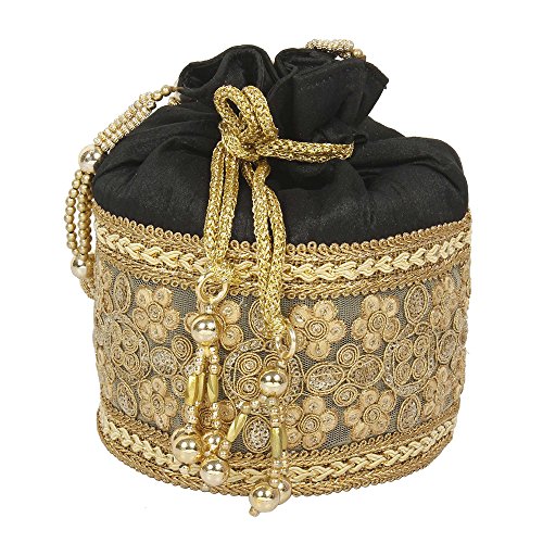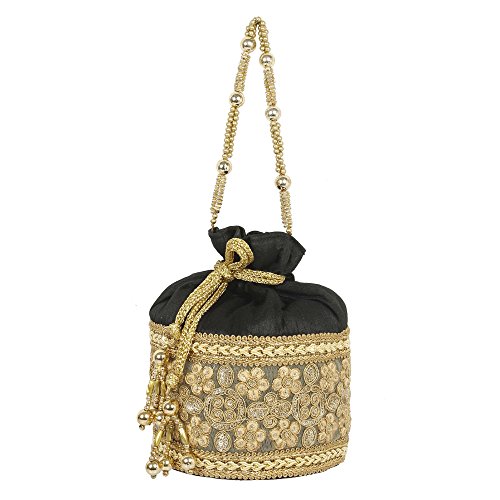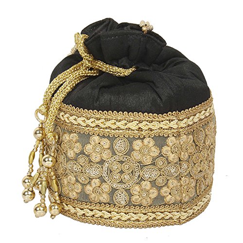 (Purse Collection)/Accessories/Handbags/DIRECT FROM USA/Purse Collection Black Colour Beautiful Drawstring Potli With Embroidery Work Purse For Womens