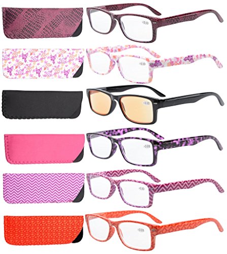 -. Brand : Eyekepper -. Feature : PRODUCTS DIMENSION-Frame material: plastic,Lens width: 2" (50mm),Frame width: 5 3/8" (136mm),Lens height: 1 1/8" (29mm),Frame height: 1 5/16" (34mm),Hinge to hinge width: 5 1/8" (130mm),Bridge (DBL): 15mm(5/8"),Temple length: 5 5/16" (135mm),Spring hinge: Yes,Lenses: Aspheric,Head size: Narrow to Medium. Rx-able frame. / EYEKEPPER READING GLASSES OPTICAL PERFORMANCE-the pupil distance(PD) is 59-63mm,the deviation for pupil distance(PD) less than 2mm,the deviation for strength less than 0.02,the deviation for lenses's horizontal line less than 1mm / EYEKEPPER PATTERNED WOMENS READING GLASSES-5 of Womens Readers +1 of computer reading glasses at 1 Low Price,Sets come in 1 power of your choice.These are not mixed powers. Include microfiber pouch. Acrylic Lens and Optically Correct.Classic Rectangular-shaped frames, look good on any face. Spring-hinged temples, help glasses fit your face. Black frame with amber lenses use for computer,other 5 pcs are clear lenses / QUALITY PLASTIC FRAME -FDA Registered Reading Glasses and Eyewear,Accord with ANSI Z80.3-2010,Accord with BS EN ISO 12312-1:2013 and EN14139:2010,Accord with AS/NZS 1067:2009,Top quality plastic frame,lenses and have spring-loaded hinges / LIFETIME BREAKAGE WARRANTY&30 DAY MONEY BACK GUARANTEE: In case any broken problem happens, contact the seller of Eyekepper without hesitation to solve the problem until satisfaction. Eyekepper provides lifetime after sale service for all Eyekepper reading glasses. Customers can return and get refunded for any reason. You have no risk to try -. Label : Eyekepper -. Manufacturer : Eyekepper -. ProductGroup : Health and Beauty -. ProductTypeName : PERSONAL_CARE_APPLIANCE -. Publisher : Eyekepper -. Studio : Eyekepper -. Title : Eyekepper 6-Pack Spring Hinges Patterned Rectangular Reading Glasses Include Computer Readers Women