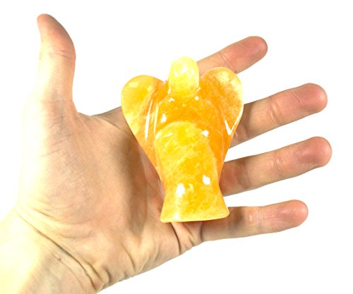 Warm Orange Stone Angel Figure, 3.5" tall, Carved from Real North American Calcite - The Artisan Mined Series by hBAR