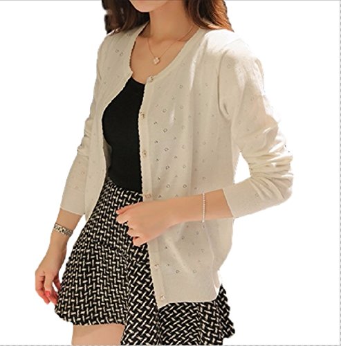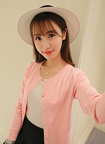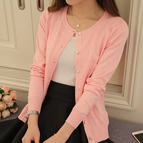 -. Title : (ソフケン) SOFUKEN 花柄 ボタン カギ編み ニット カーディガン 長袖 薄手 春夏用 トップス オフィス 白 黒 ピンク 赤 M L 2.7.0