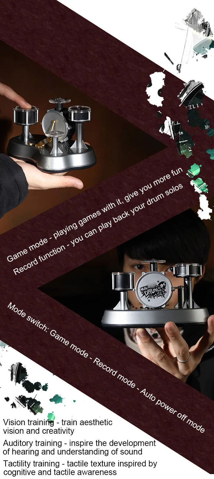 Package Contents:1 x Mini Finger Touch Drum Set